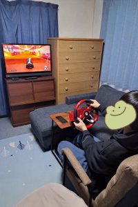 パパのお小遣いでマリオカートの専用ハンドルを買い、子供たちも大喜び。