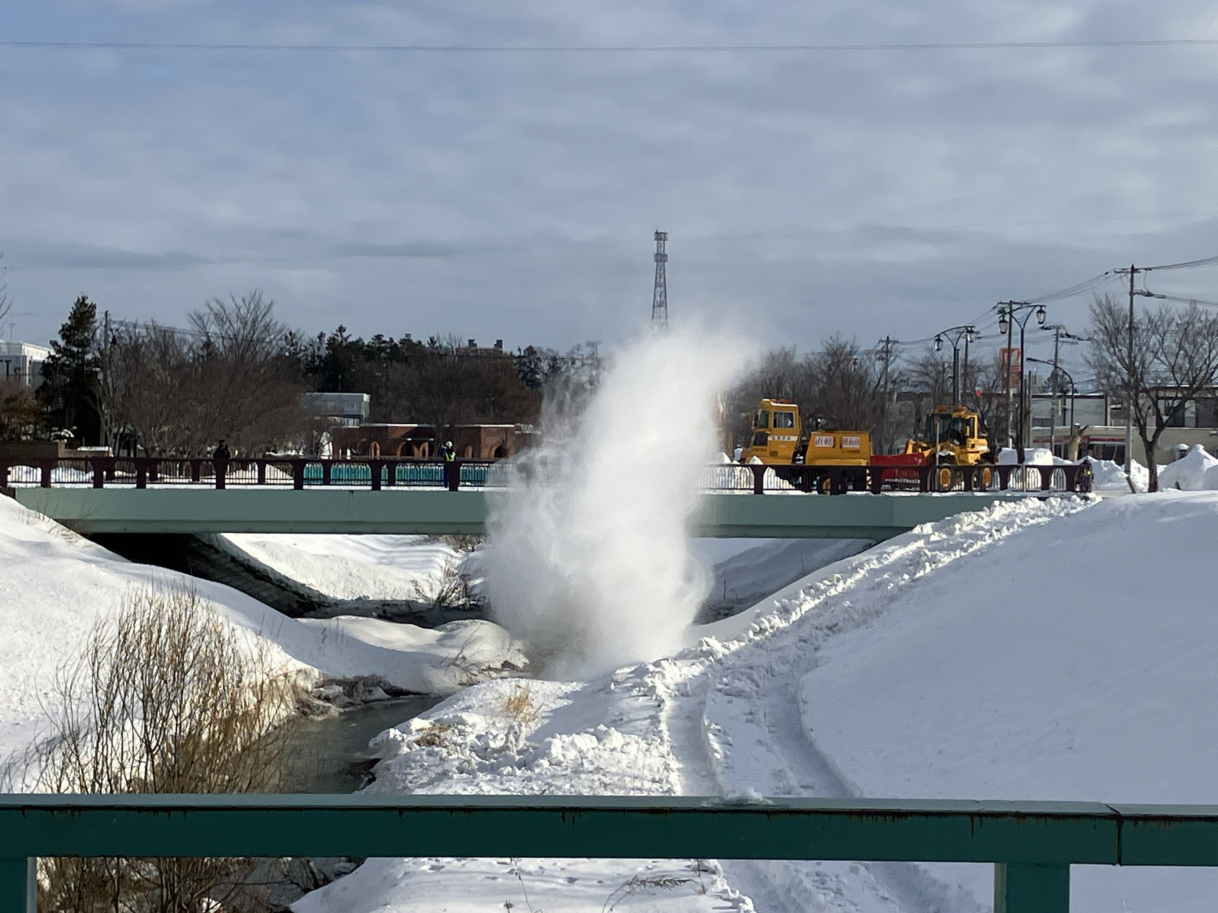 市役所ロータリー除雪車にて利根川に投雪を行いました。
